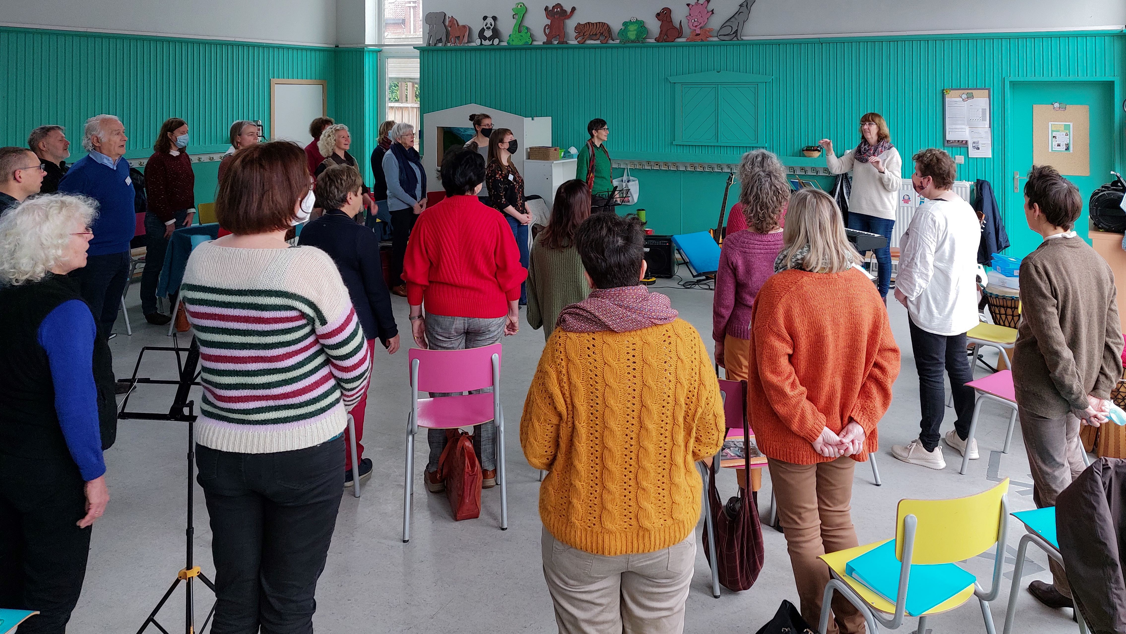 Zang en stemvormingTijdens de koordag wordt er extra aandacht gegeven aan zang en onze stem. Onder deskundige begeleiding van een professionele stemcoach, verfijnen we enkele nummers of oefenen we stemtechnieken. Zo proberen we voor onszelf de lat net dat ietsje hoger te tillen. |